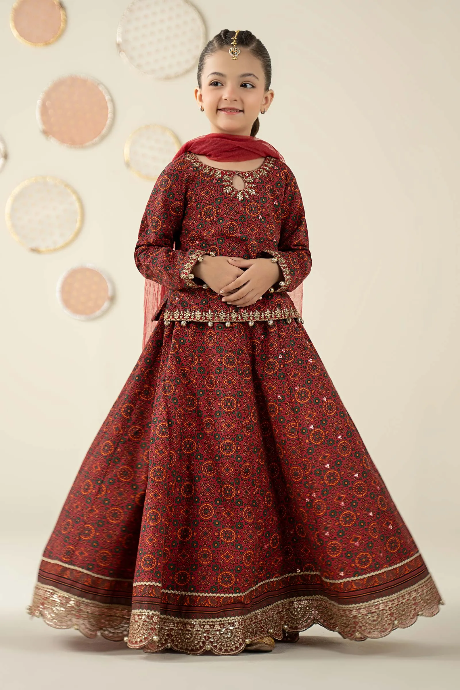 Embroidered Border With Gotta Balls Drop Detailing