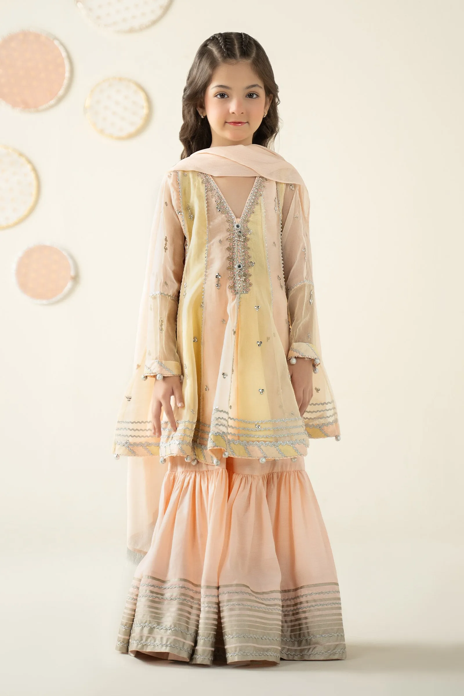 Embroidered Neckline With Gotta Lace & Buttons Detailing