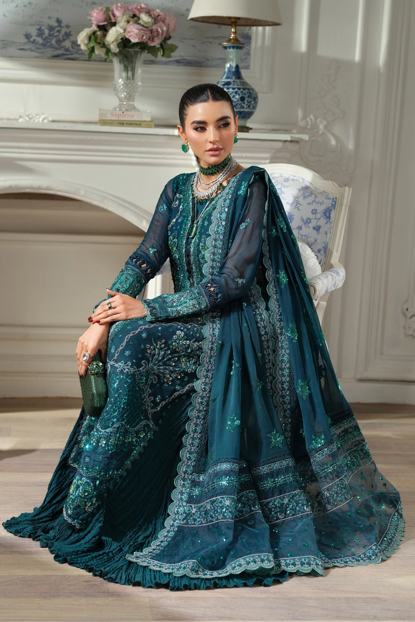 - Embroidered sequins dupatta on chiffon
