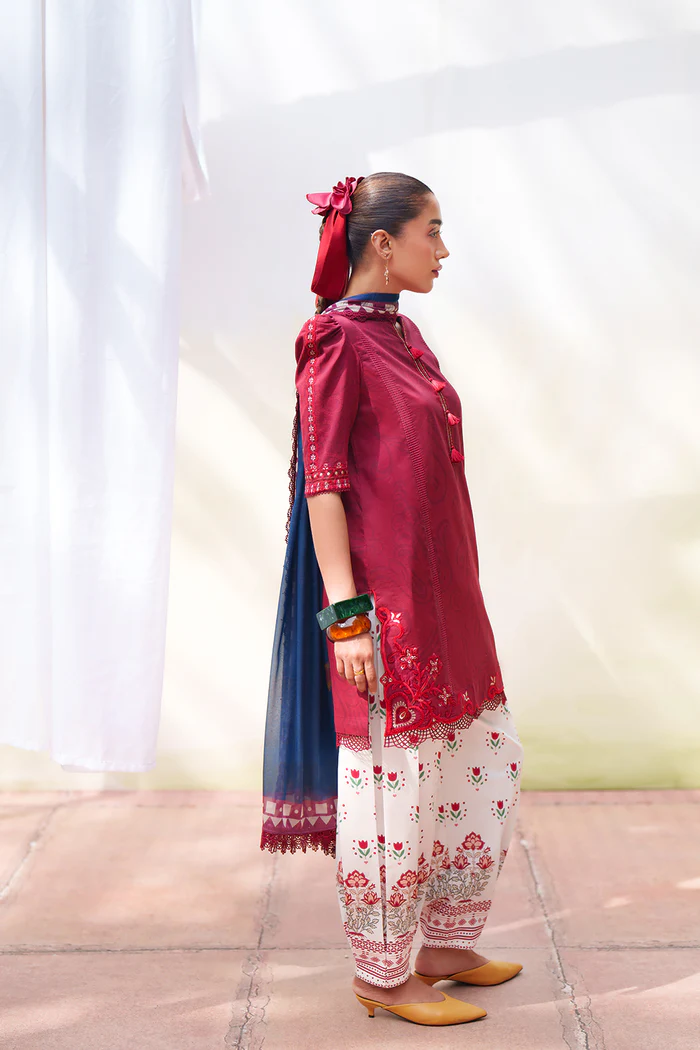 DESCRIPTION: This beautiful 3-piece unstitched lawn outfit features intricate detailing and is gracefully paired with a soft, flowy chiffon dupatta.