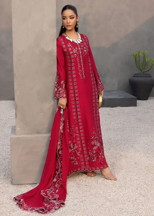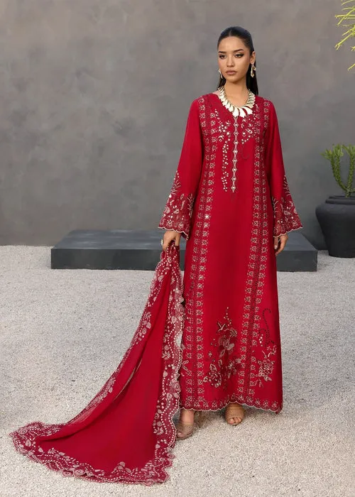 A crimson vision of grace and grandeur. Draped in richly embroidered fabric, this ensemble flows with effortless elegance. Intricate threadwork and ornate detailing create a masterpiece for the woman who embodies strength, sophistication, and timeless allure.