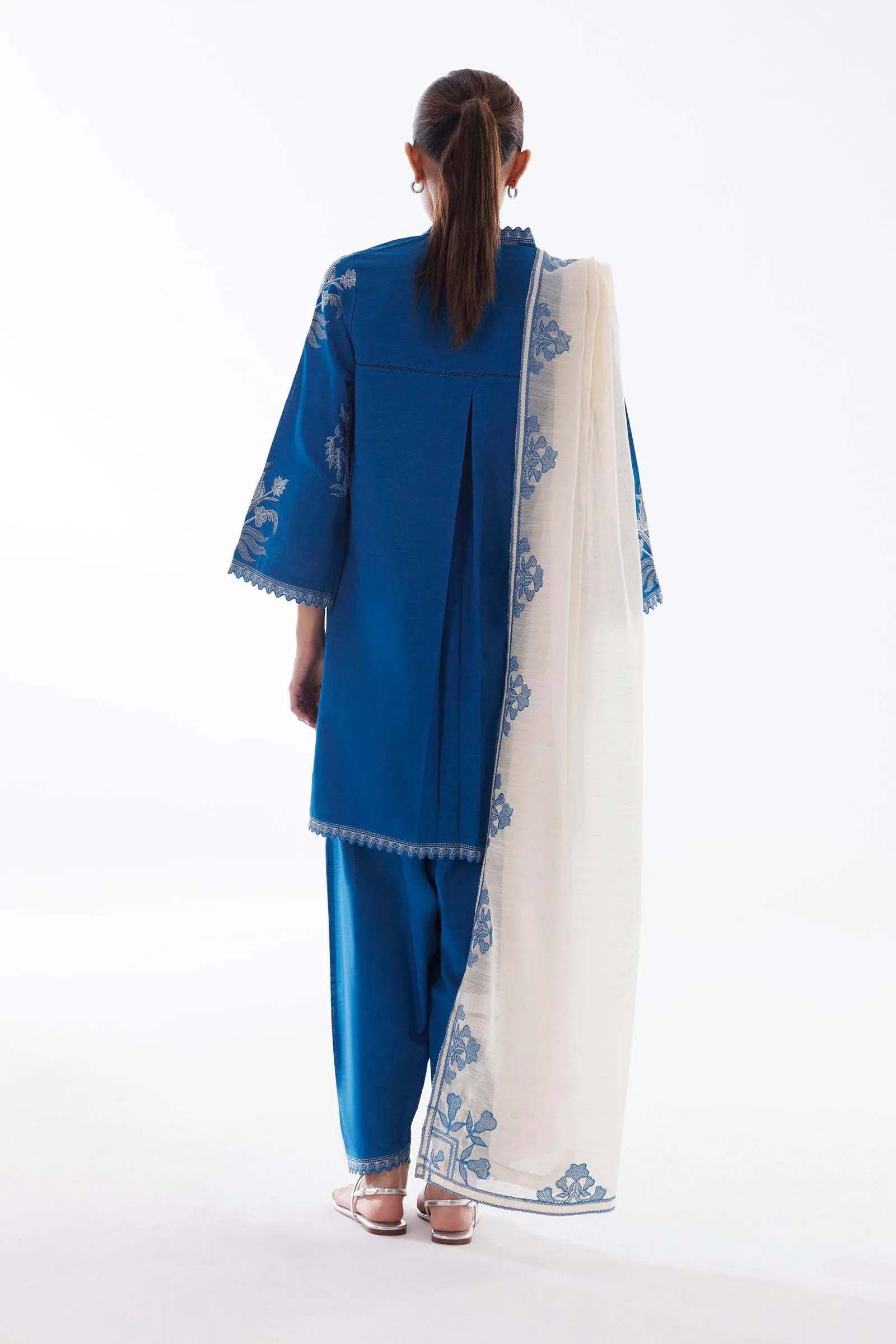 Trouser: Blue Slub Khaddar Skinny Shalwar Included