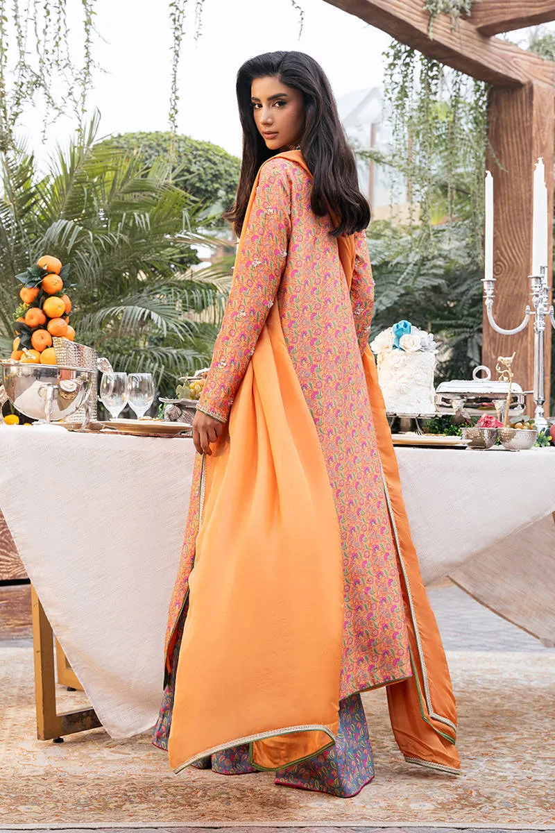Digitally printed Shirt Prepared in pure raw silk with delicate florals. The shirt is further enhanced with subtle hand embellishments, adding a touch of artisanal detail while maintaining a soft, graceful aesthetic. It is paired with contrast PK raw silk pants, designed to complement the look with their structured silhouette. Completing the ensemble is a flowing Kp silk dupatta, draped effortlessly to add lightness and movement, beautifully balancing the richness of the silk textures.